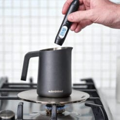 Deze kleine, contactloze digitale thermometer van Subminimal is de perfecte partner voor je Latte Art melkkan. Meet snel de temperatuur van je melk zonder een sonde in de kan te steken. Dat betekent: weer een ding minder om schoon te maken!