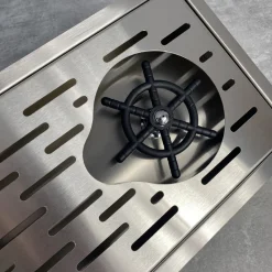 Praktische inbouw pitcher rinser om snel en efficiënt je melkkannen schoon te kunnen maken èn te laten drogen.
